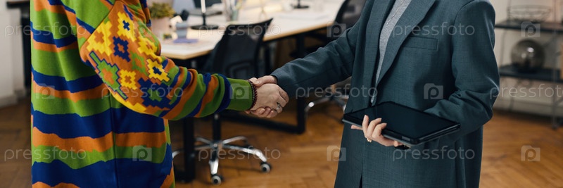 Коллеги пожали друг другу руки в офисе
