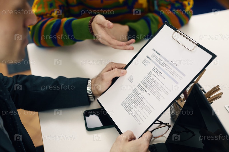 Бизнесмен обсуждает контракт на совещании