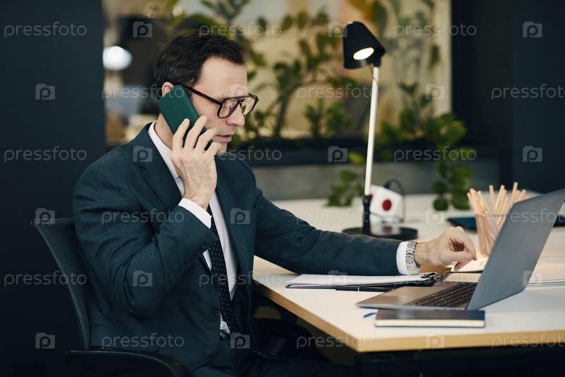 Бизнесмен, работающий на своем рабочем месте в офисе