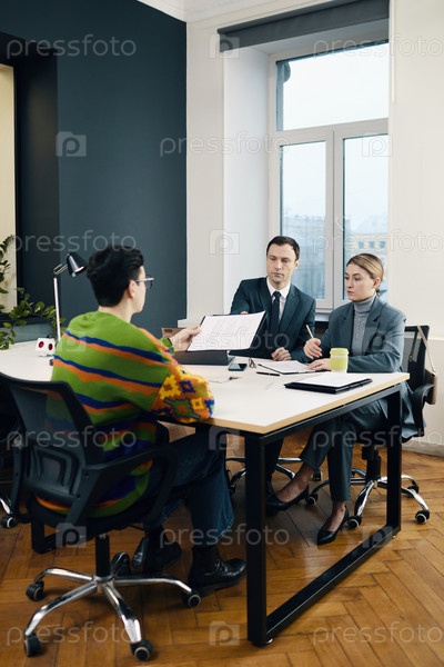 Кандидат, представляющий свое резюме на собеседовании