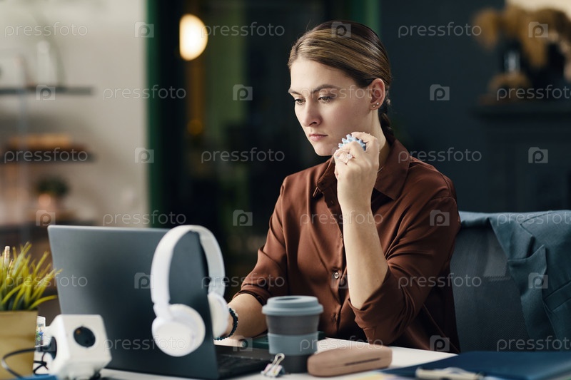 Деловая женщина, выполняющая онлайн-работу в офисе