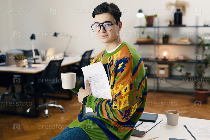 Сотрудник пьет кофе во время перерыва в офисе