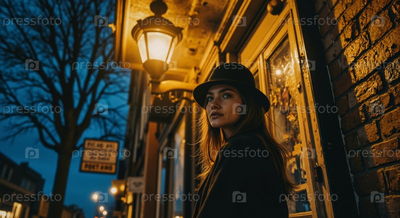 Женщина, стоящая возле уличных ламп в вечернее время