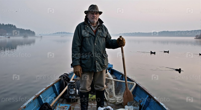 Рыбалка на спокойном озере с туманной утренней атмосферой