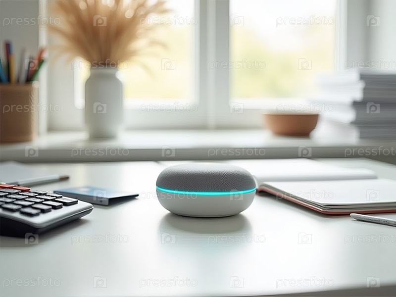 Умный динамик освещает минималистическое рабочее пространство