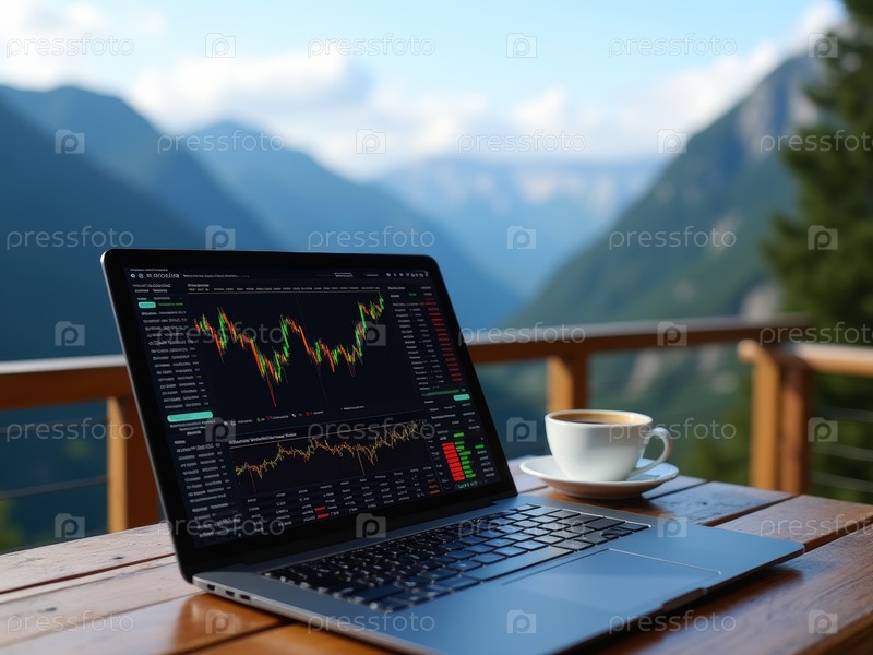 Анализ тенденций фондового рынка на ноутбуке на открытом воздухе