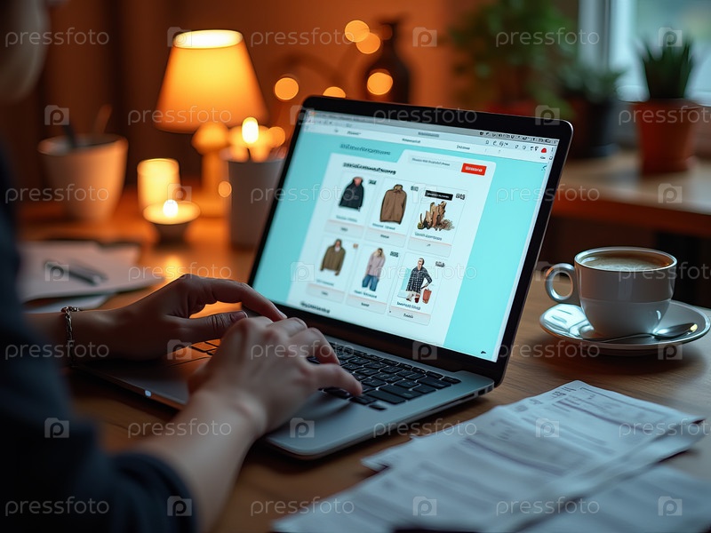 Просмотр сайта онлайн-магазинов на ноутбуке ночью