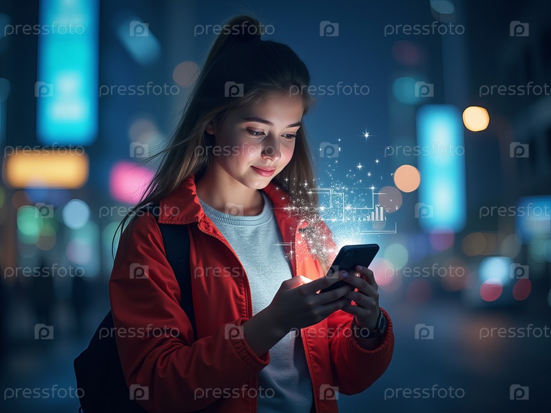 Исследуйте цифровой мир, используя смартфон в ночном городе