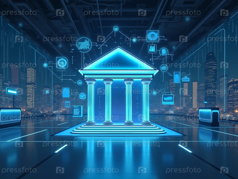 Освещение цифровых столпов в футуристическом городском ландшафте