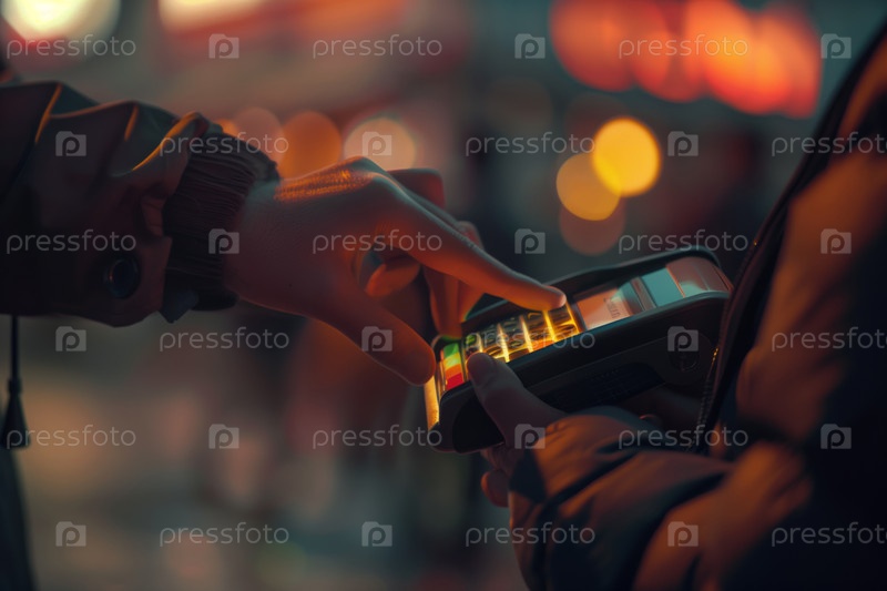 Ближайшее изображение руки, держащей бесконтактное платежное устройство