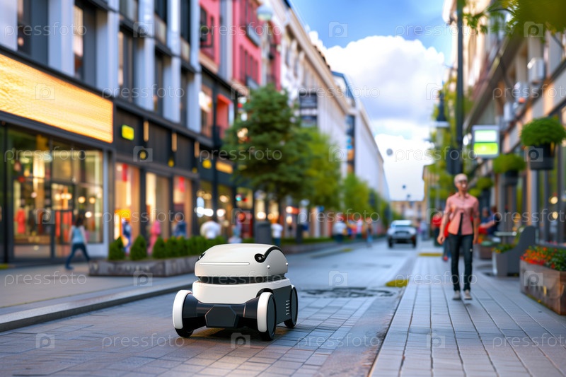 Автономный робот доставки, ориентирующийся по городской улице днем