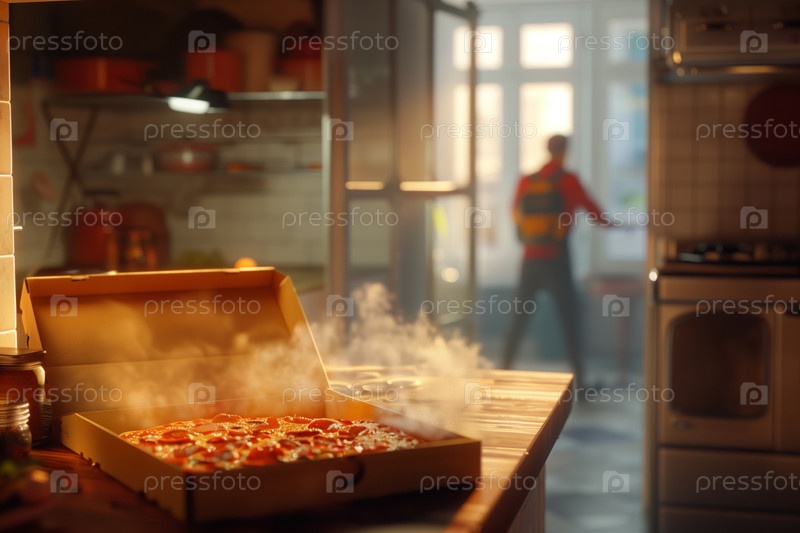 Парить свежевыпеченную пиццу в уютной кухонной обстановке