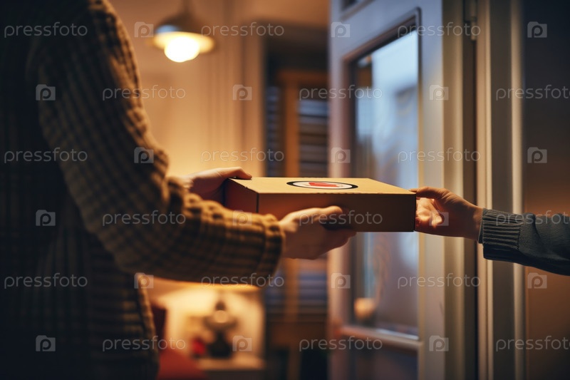 Передача пакета в уютной вечерней атмосфере