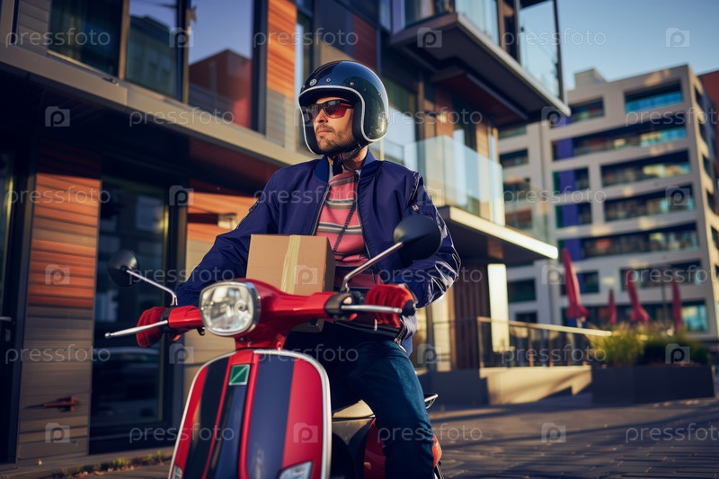 Доставка пакетов на скутере в городском ландшафте