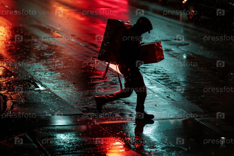 Доставка еды в дождливую ночь в городской среде