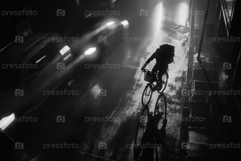 Велогонка ночью под дождем на городской улице
