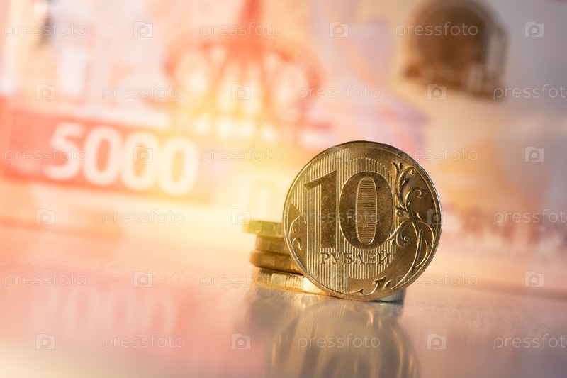 Удержание рубля. Фокус на десятирублевой монете. Макросъемка. Россия 24.02.2025