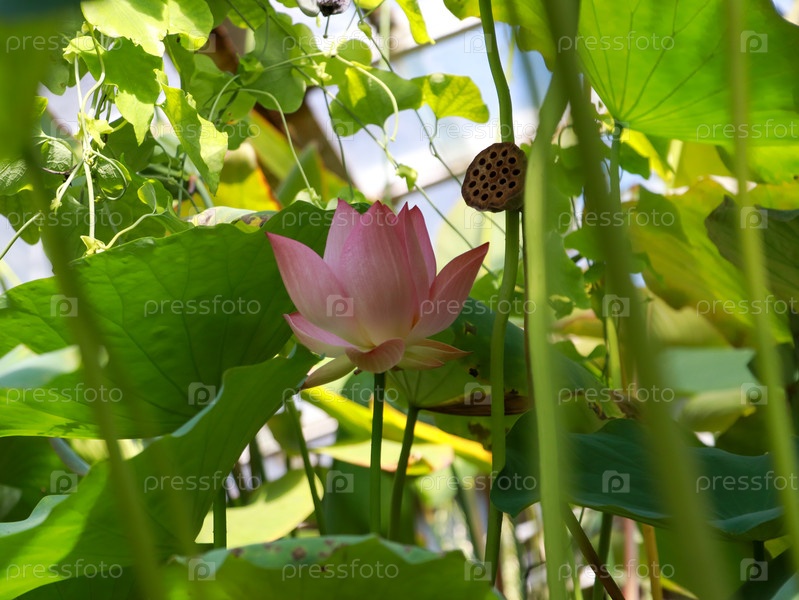 Розовый лотос в теплице Ботанического сада Петра Великого