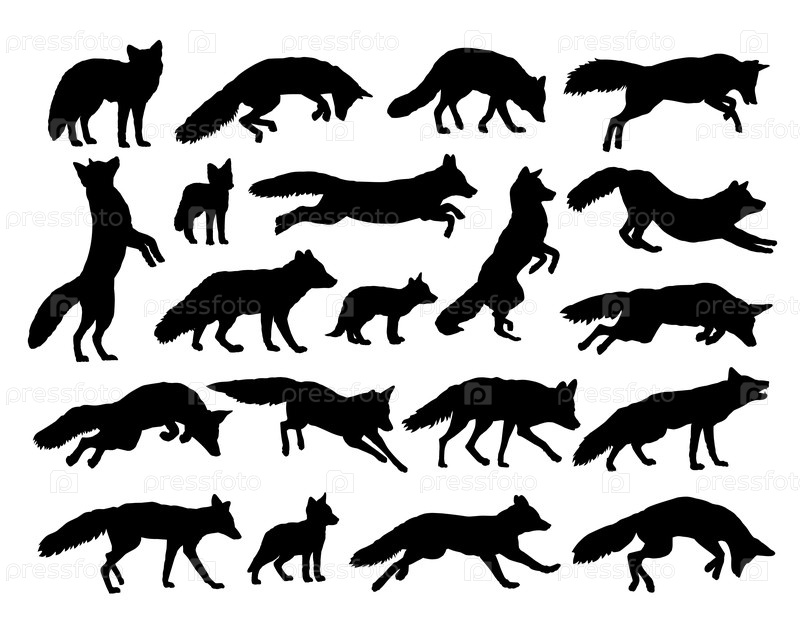 Набор силуэтов диких лис