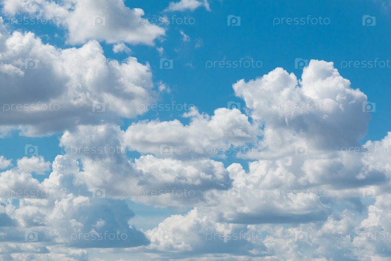 Белые пушистые облака, разбросанные по ярко-голубому небу, создают безмятежную и мирную атмосферу. Облака кажутся мягкими и величественными, добавляя глубины текстуре неба