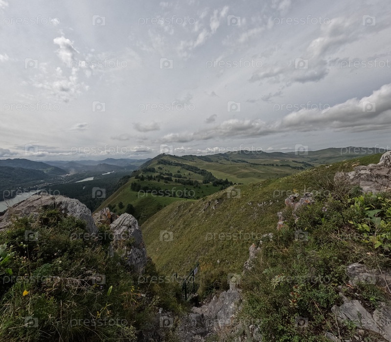 Вид со скалы Чертов Палец, Горный Алтай. Лето. View from the Devil's Finger cliff, Altai Mountains. Summer