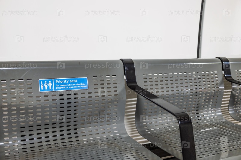 Указатели приоритетного размещения для пожилых людей и инвалидов на металлических скамейках