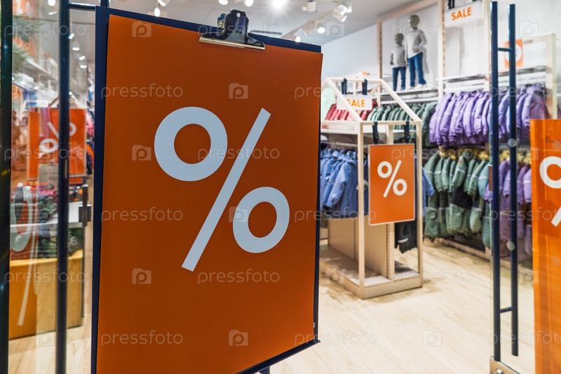 Жирный знак процента оранжевого цвета используется для продвижения распродаж в магазине модной одежды