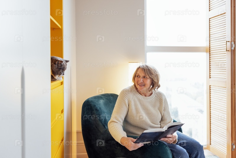 Дама средних лет улыбается и держит книгу