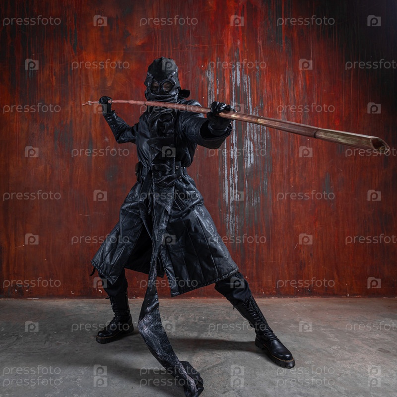 Странный постапокалиптический чудак в кожаном костюме и маске