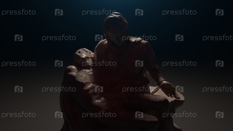 Современная интерпретация «Пьеты» Микеланджело, 3D-графика и неоновая подсветка