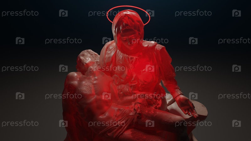 Современная интерпретация «Пьеты» Микеланджело, 3D-графика и неоновая подсветка