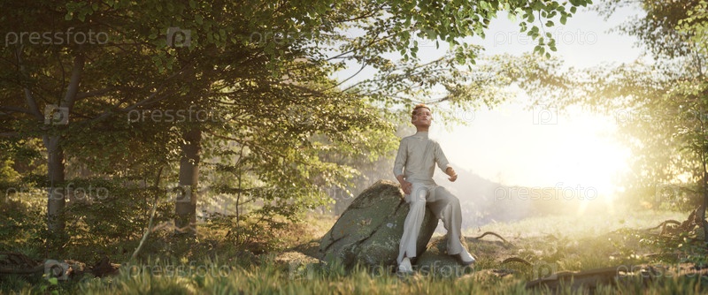 Спокойная 3D-анимация лиственного леса с возвышающимися дубами и покрытыми мхом стволами