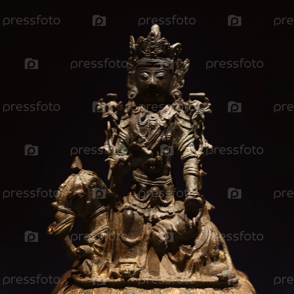 На изображении изображена древняя статуэтка буддийской богини Намгьялмы, Китай, XIX век, бронза