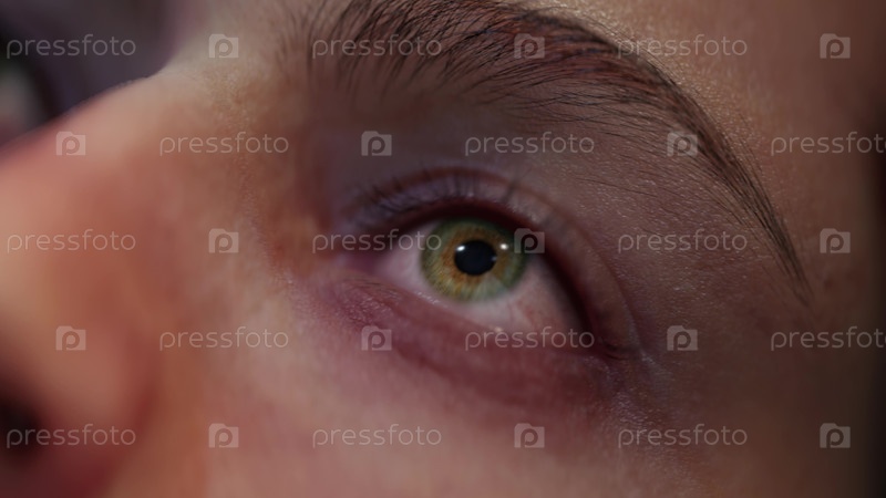 Моргание напряженных глаз, крупный план, женские глаза, частое моргание