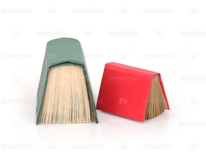 Красные и зеленые книги, изолированные на белом фоне