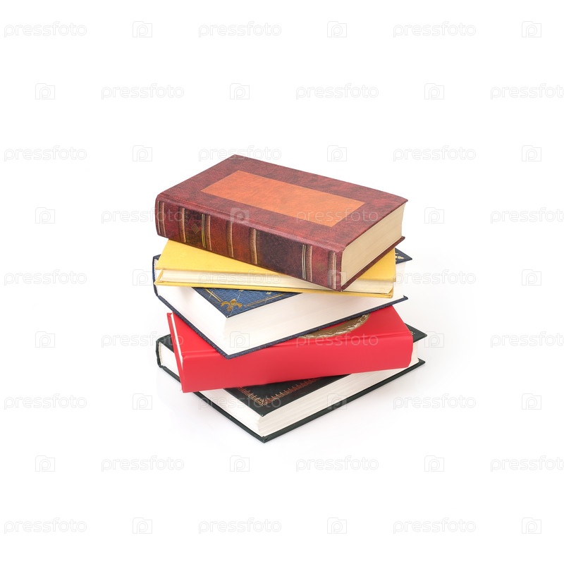 Стопка книг в разноцветных обложках, изолированная на белом фоне