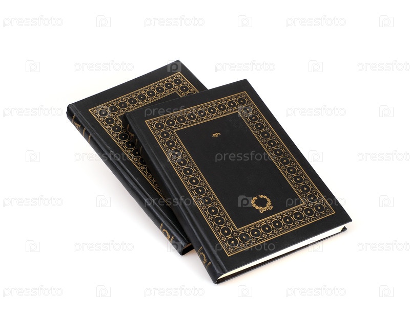 Стопка книг в черных обложках с белыми листами, изолированных на белом фоне