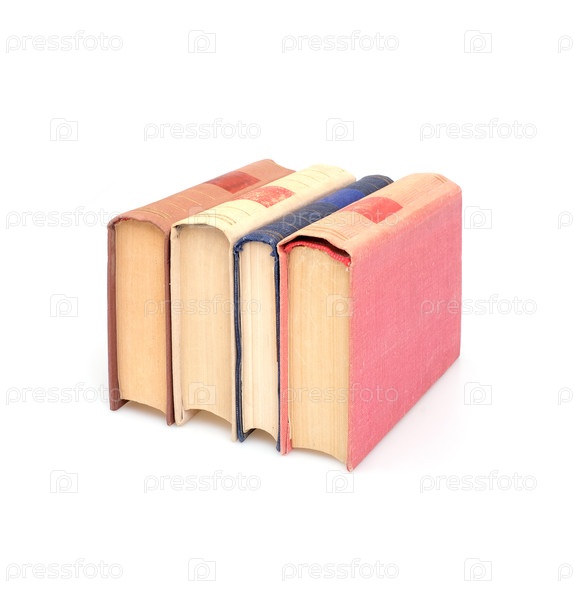 Стопка книг в цветных обложках с белыми листами, изолированных на белом фоне