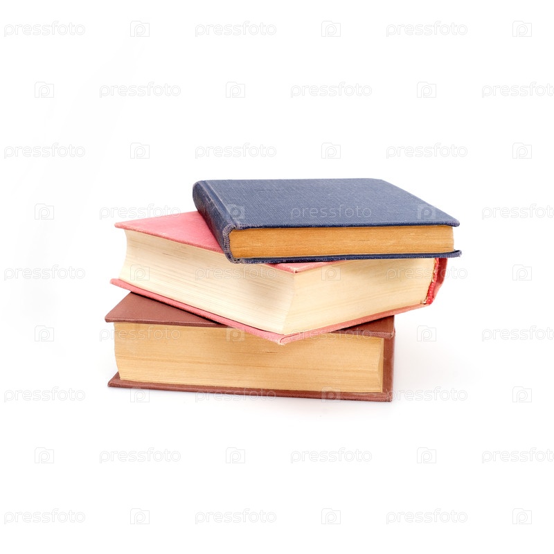 Стопка книг в разноцветных обложках, изолированная на белом фоне