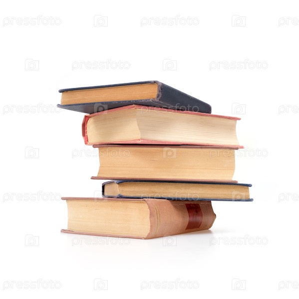 Стопка книг в цветных обложках с белыми листами, изолированных на белом фоне
