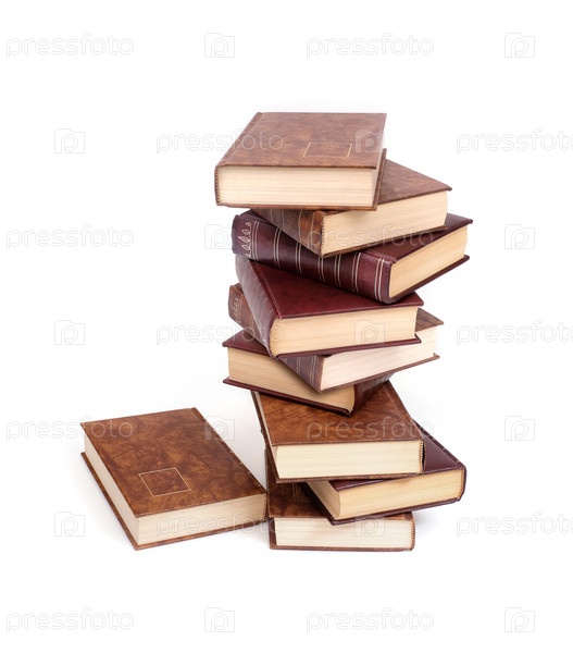 Стопка книг в коричневых обложках, изолированных на белом фоне