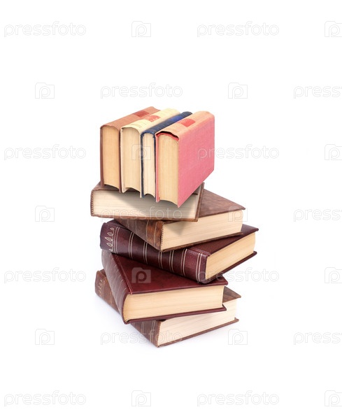 Стопка книг в коричневых обложках, изолированных на белом фоне