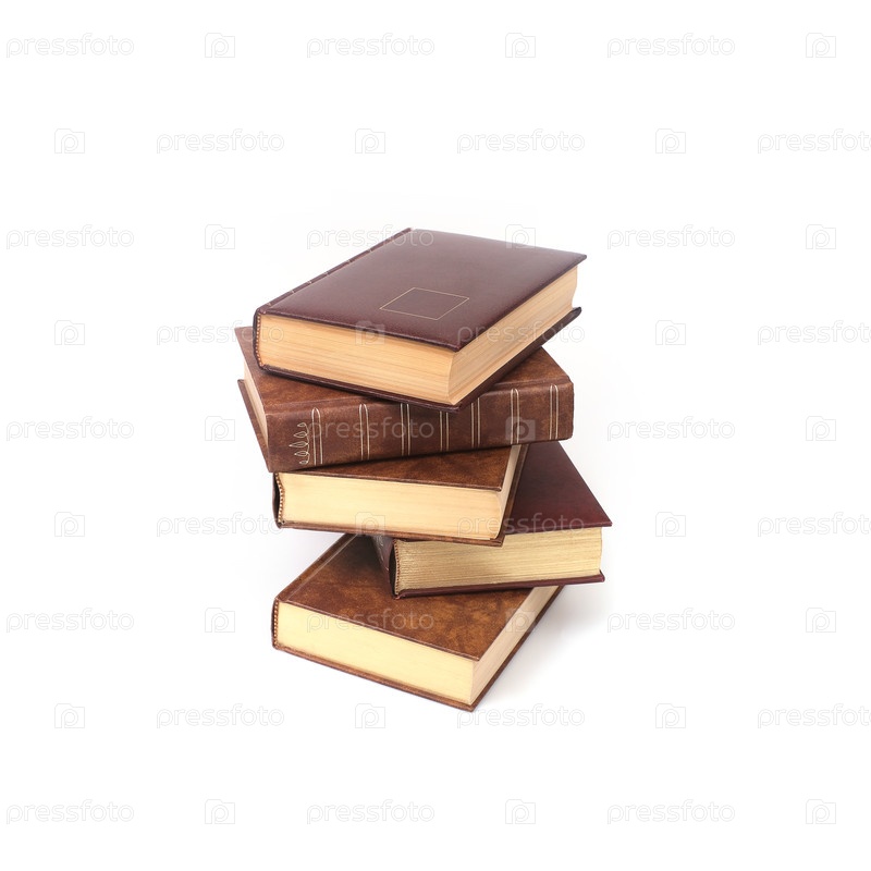 Стопка книг в коричневых обложках, изолированных на белом фоне