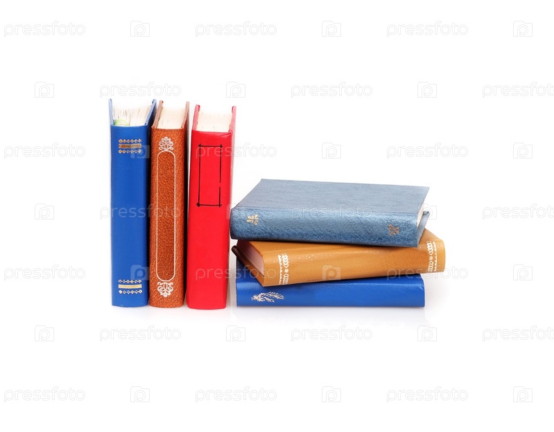 Стопка книг в цветных обложках с белыми листами, изолированных на белом фоне