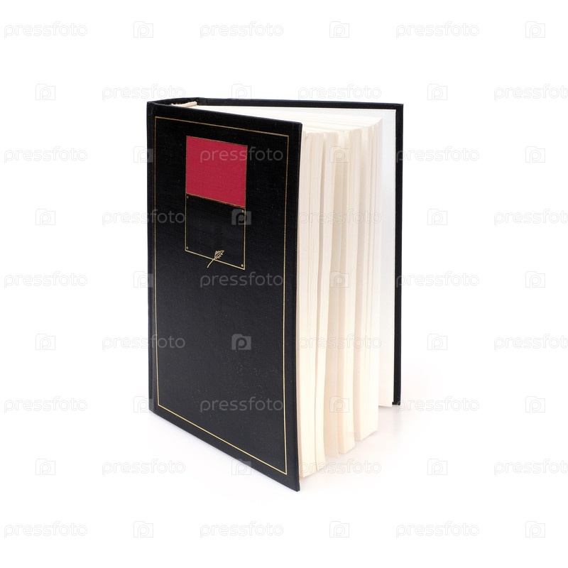 Книга в черной обложке с белыми листами, изолированными на белом фоне