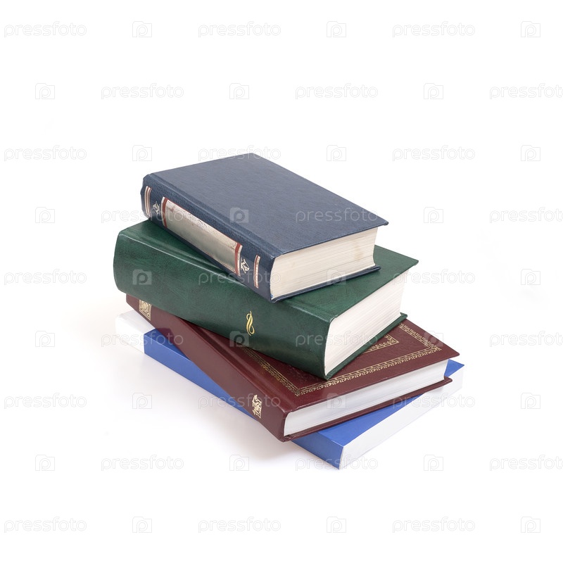 Стопка красных, синих и зеленых книг, изолированных на белом фоне