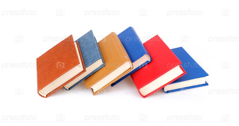 Стопка книг в цветных обложках с белыми листами, изолированных на белом фоне