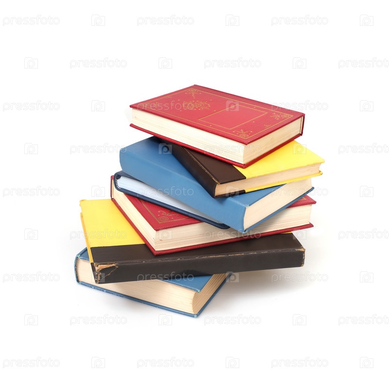 Стопка книг в цветных обложках, изолированных на белом фоне
