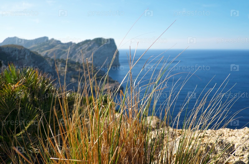 Вид на морской залив с высокой скалы в солнечный летний день