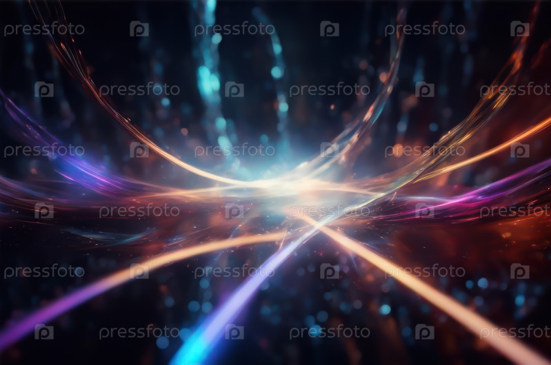 Абстрактные неоновые волокна, переплетенные в яркий гобеленовый узор на черном фоне